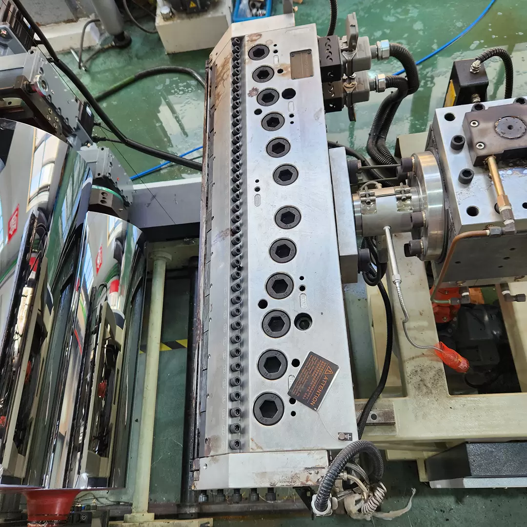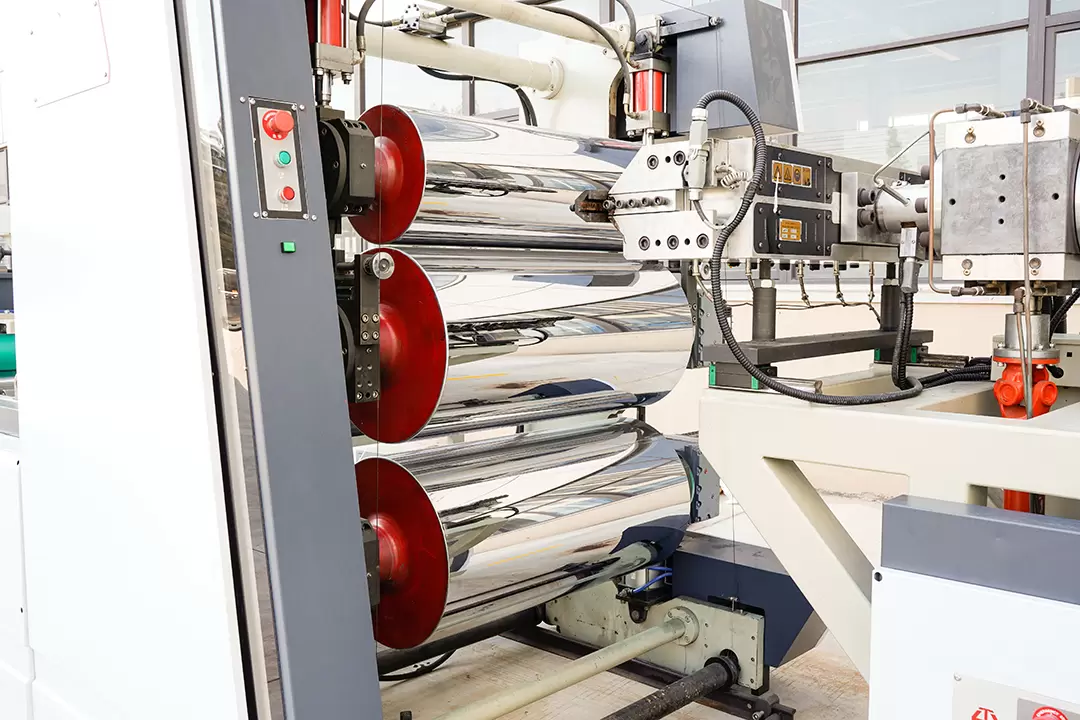 Листовой экструдер состоит из частей экструзии, каландрирования, тяги, намотки и других. Основные изнашиваемые части прошли высококачественную специальную обработку и устойчивы к коррозии и высоким температурам. Низкие силы сопротивления в канале экструзии головки обеспечивают равномерную толщину листа, спиральные канавки в трех роликах обеспечивают эффективное охлаждение, а замена гидравлического блока и установка ситового сменщика легко выполняются без остановки машины.