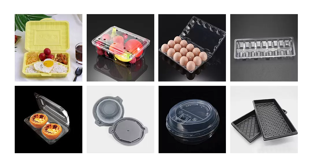 такие как пластиковые лотки, складные контейнеры, ланч-боксы, ящики для фруктов с боковыми отверстиями, крышки, лотки для рассады, ящики для клубники и черники.