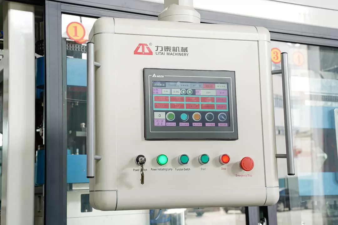 Система управления ПЛК: Благодаря усовершенствованной системе управления ПЛК пользователи могут точно устанавливать и контролировать различные параметры процесса в режиме реального времени с помощью интерфейса сенсорного экрана, включая температуру, давление, время формования и т. д.