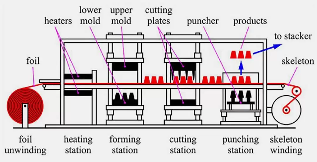 Термоформовочные машины производят формование различными способами (вакуумное формование, компрессионное формование и т. д.), обладают гибкими процессами и подходят для изделий средней сложности.