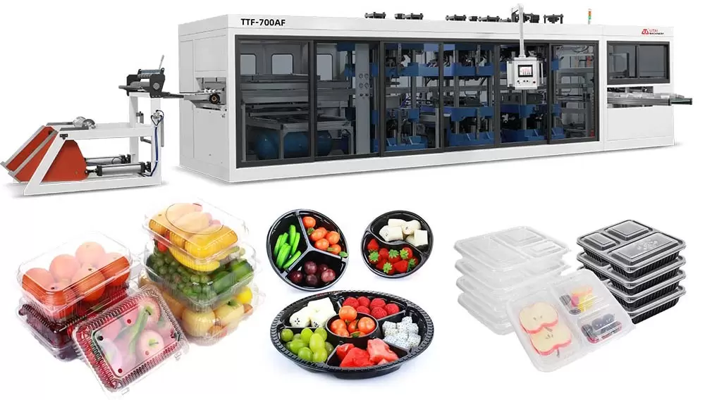 Полностью автоматическая термоформовочная машина серии TTF — это наш новейший разработанный основной продукт. Машина объединяет в себе формовку, резку и укладку в один процесс. Широко используется и подходит для большинства запросов клиентов, может производить пластиковые лотки, контейнеры, коробки, крышки и т. д. Машина полностью приводится в действие серводвигателем. Стабильная работа, низкий уровень шума, высокая эффективность, высокое качество.