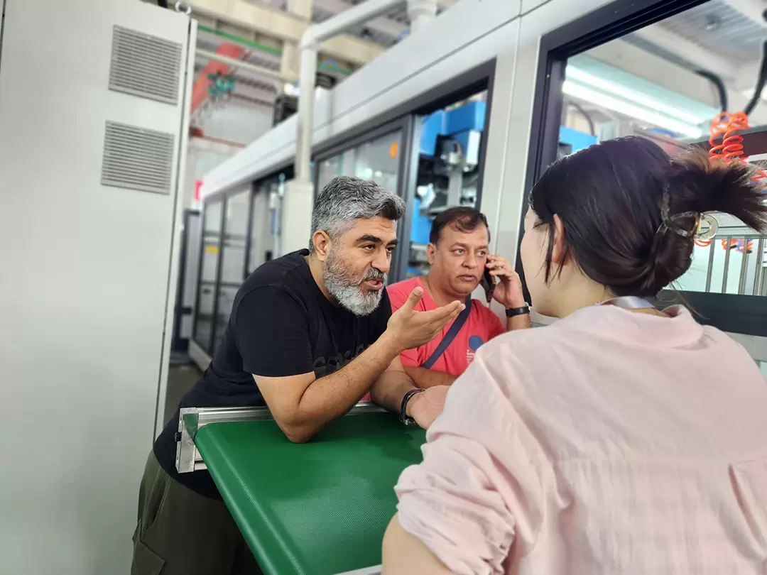 21 августа 2023 года наш индийский клиент приехал на завод для обучения. Поскольку клиент беспокоился, что будет сложно подать заявление на визу инженера по вводу в эксплуатацию из Китая в Индию, клиент проявил инициативу и приехал на наш завод, чтобы изучить оборудование, чтобы как можно скорее начать производство и отправку. Мы также благодарим клиента за нашу поддержку. С пониманием и поддержкой клиент приобрел в нашей компании автоматическую трехстанционную пластиковую термоформовочную машину TTF-700A и 11 комплектов форм, которые используются для производства 8-секционных коробок для еды на вынос и 3-секционных коробок для еды на вынос из полипропиленовых материалов, а также пластиковых складных коробок из ПЭТ разной глубины. В основном используется для упаковки фруктовых салатов.