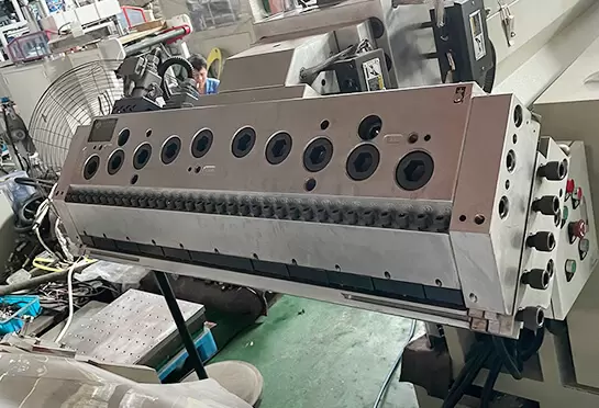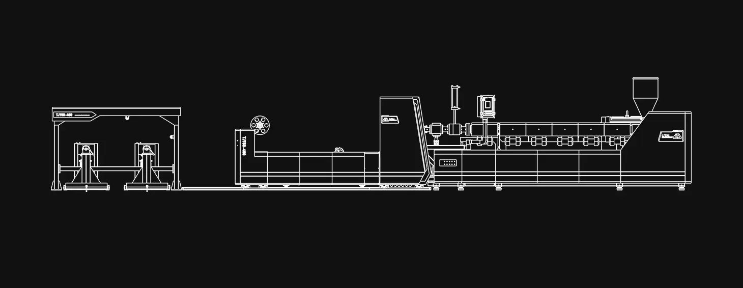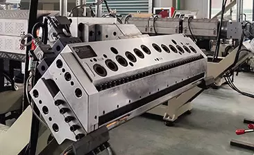 Экструзионная головка с наклоном под углом 45°: Низкая сила сопротивления в экструзионном канале экструзионной головки обеспечивает равномерную толщину листа.
