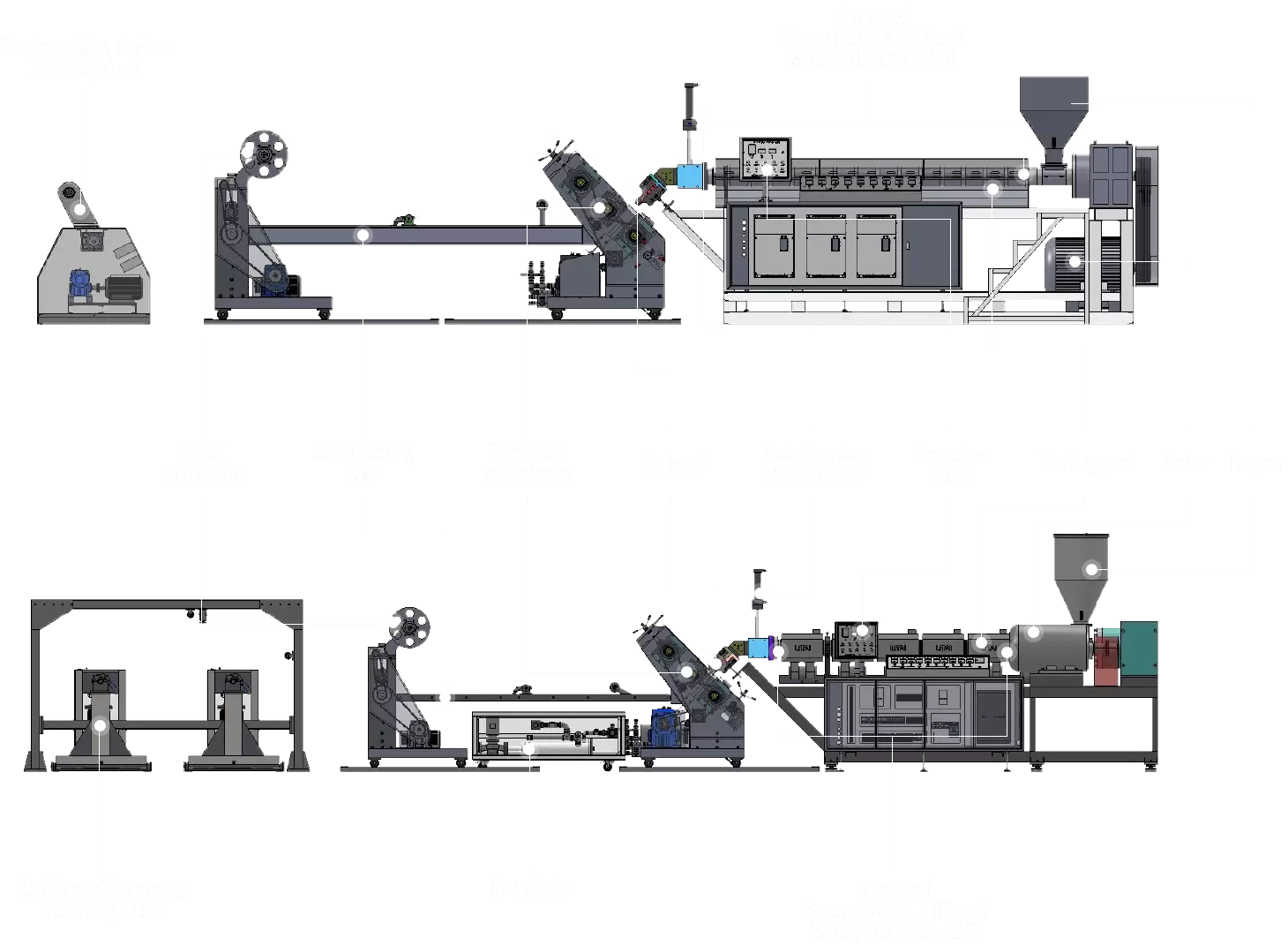 Листовой экструдер состоит из экструзии, каландрирования, тяги и прокатки. Основные части устойчивы к истиранию, устойчивы к коррозии, устойчивы к высоким температурам благодаря высококачественной специальной обработке. Низкая сила сопротивления в экструзионном канале экструзионной головки обеспечивает равномерную толщину листа, внутренний спиральный резервуар в трех роликах обеспечивает эффективное охлаждение, а устройство смены сетки легко заменяется и устанавливается с гидравлическим блоком давления, нет необходимости останавливать машину. Машина экструдирует гранулы ПП/ПС в листы ПП/ПС одного цвета, которые используются для производства пластиковых изделий на машинах для термоформования пластика, таких как чашки, пищевые контейнеры, подносы, тарелки, миски, крышки и т. д.
