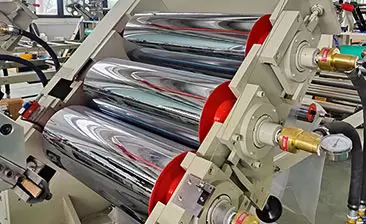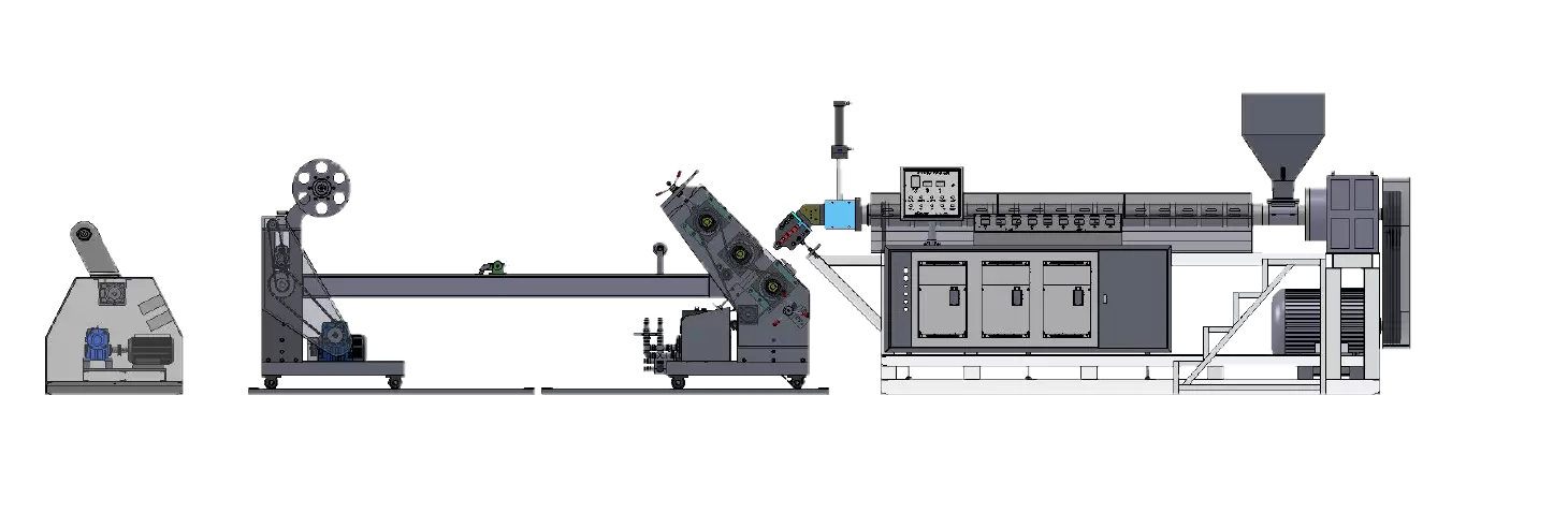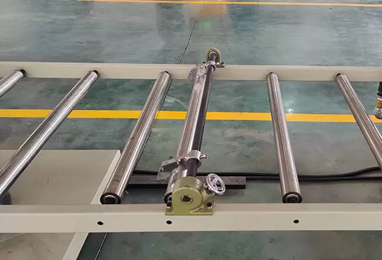 Трехвалковая часть прессует сырье, экструдированное матрицей, в форму пластины и охлаждает до формы; три ролика косые три ролика, простая конструкция, простота в эксплуатации и обслуживании.