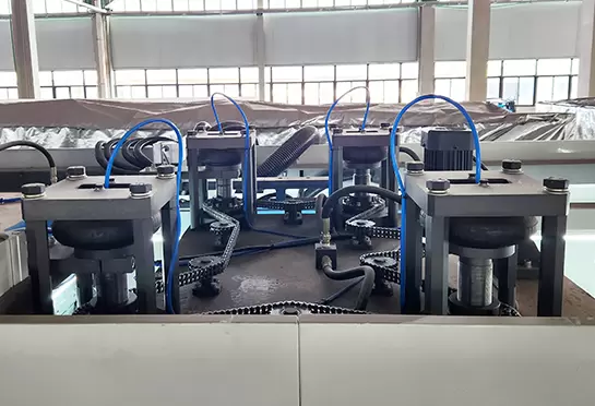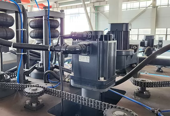 Зубчатая цепь из марганца 65# помогает транспортировать лист. Алюминиевые рельсы с водяным охлаждением, экономят воду.